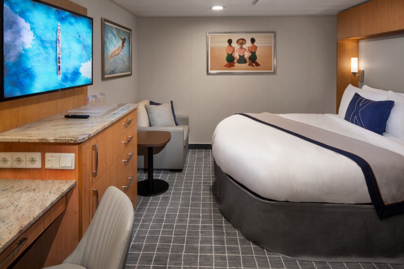 Základní vybavení všech kajut: koupelna s WC, fén, toaletní potřeby; lůžka, dostatek úložných prostor, toaletka se zrcadlem, individuálně nastavitelná klimatizace, TV, župany, trezor, minibar.