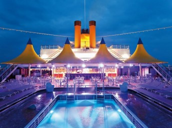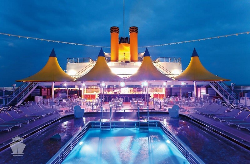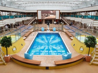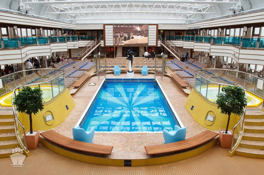 • otevřený bazén na horní palubě, 1 bazén s posuvnou prosklenou střechou, bazén pro děti