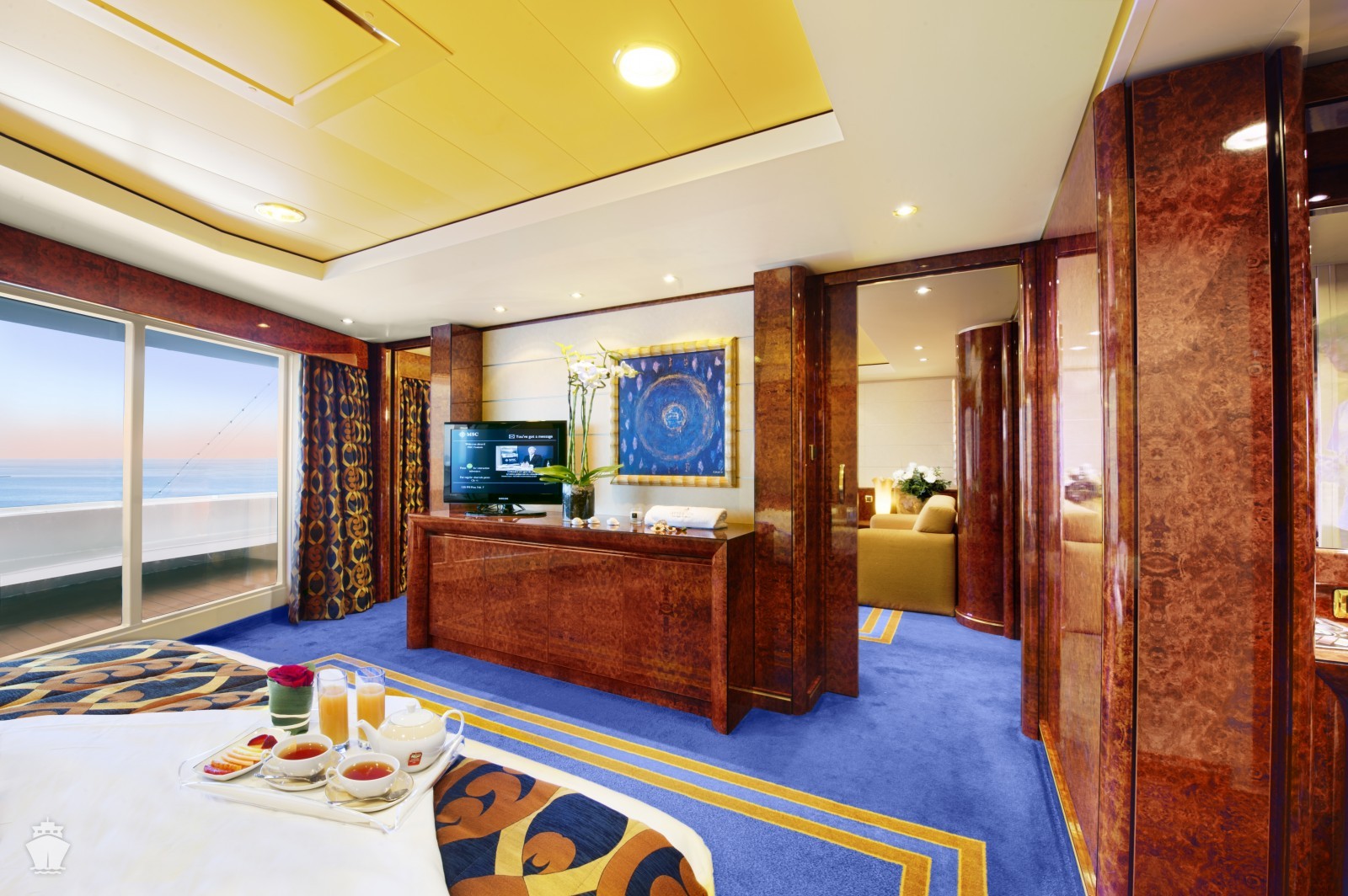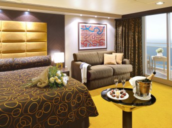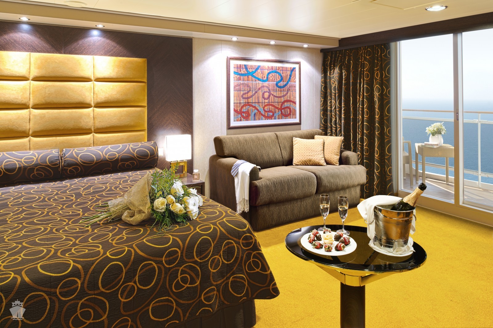 Kajuta s balkónem: 22 - 26 m², kajuta s manželskou postelí (na požádání 2 oddělené postele) a rozkládací pohovka. Klimatizace, koupelna se sprchou nebo vanou a WC, toaletní stolek, prostorná skříň, interaktivní TV, telefon, sejf, vysoušeč vlasů. Balkony se stolkem a židlemi. Některé kajuty mají omezený výhled.
