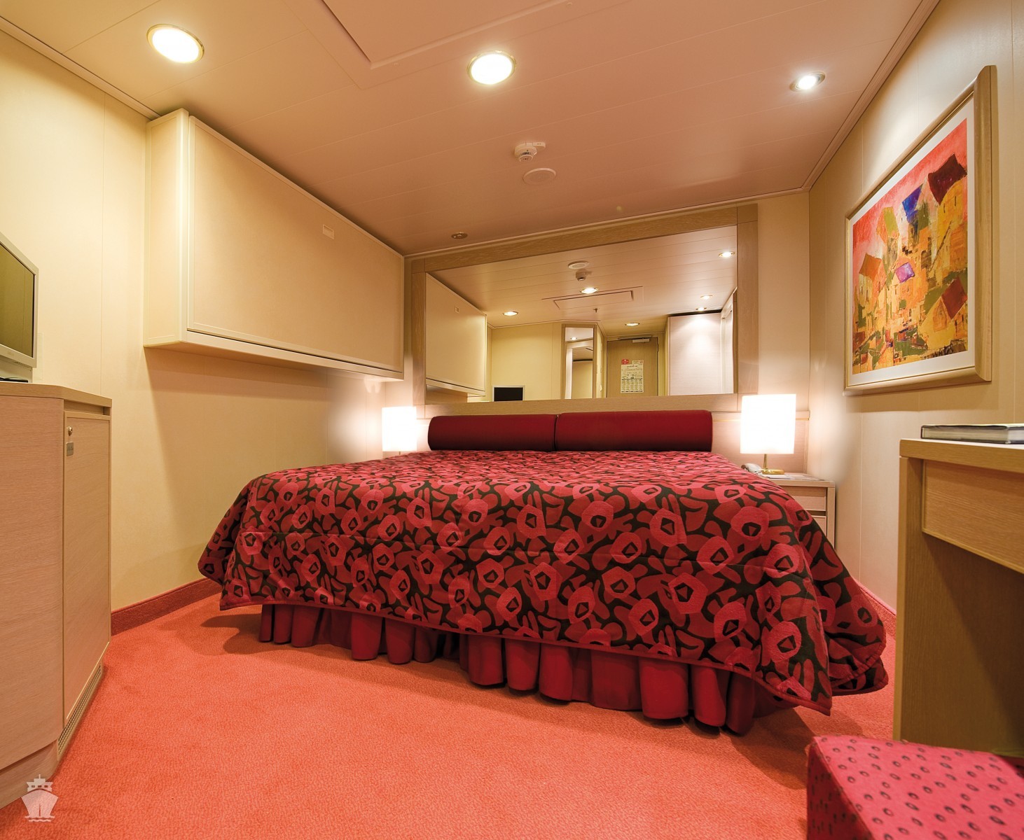 Kajuta vnitřní: 13 m², kajuta s manželskou postelí (na požádání 2 oddělené postele) a 1-2 vyklápěcí horní lůžka. Klimatizace, koupelna se sprchou a WC, toaletní stolek, skříň, interaktivní TV, minibar, sejf, telefon, vysoušeč vlasů.