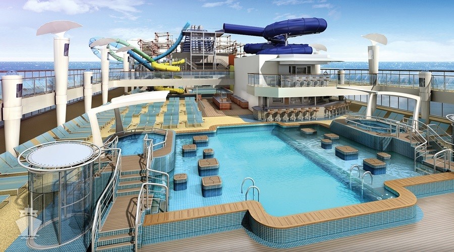 - Venkovní bary u bazénu, včetně zóny pro dospělé: Topsiders, Waves Pool Bar, Great Outdoors Bar, Spice H₂O, Vibe Beach Club