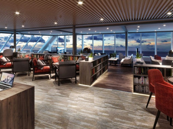 Apartmán s 1 nebo 2 místnostmi na 7. a 8. palubě. Obývací část s Tv, jídelní stůl, kávovar, minibar a balkon nebo neotevíratelné panoramatické okno.