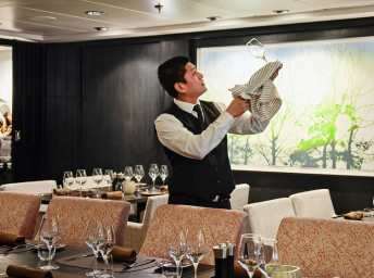 Hlavná reštaurácia Aune v tradičnom štýle, kde sa podávajú hlavné jedlá; celodenne otvorená Fredheim na bežné medzinárodné stolovanie; a Lindstrøm, exkluzívna top reštaurácia zahrnutá v cene plavby pre hostí Suite a pre ostatných na rezerváciu a za príplatok. Každá z nich ponúka kuchyňu s jedinečným charakterom, s využitím bio a lokálnych surovín.