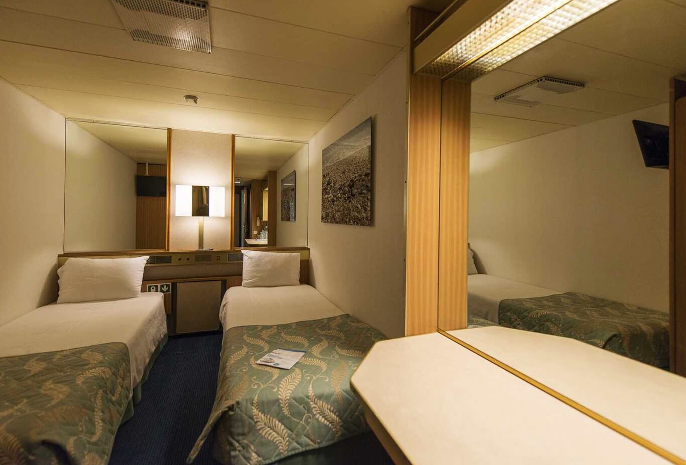 Všechny kajuty mají koupelnu se sprchou, vysoušeč vlasů, telefon, TV.