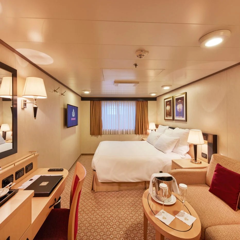 Užijte si nadstandardní služby Cunard, jako je přednostní nalodění a vylodění, bezplatná pramenitá voda a speciální zařízení na přípravu čaje a kávy.