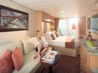 Základní vybavení všech kajut: koupelna s WC, fén, toaletní potřeby; lůžka, dostatek úložných prostor, toaletka se zrcadlem, individuálně nastavitelná klimatizace, ​​TV, župany, trezor, minibar.