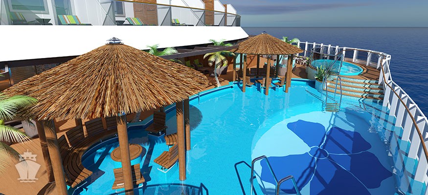 - Seaside Theater s 25m² LED obrazovkou pro ty, kteří chtějí sledovat filmy přímo z bazénu