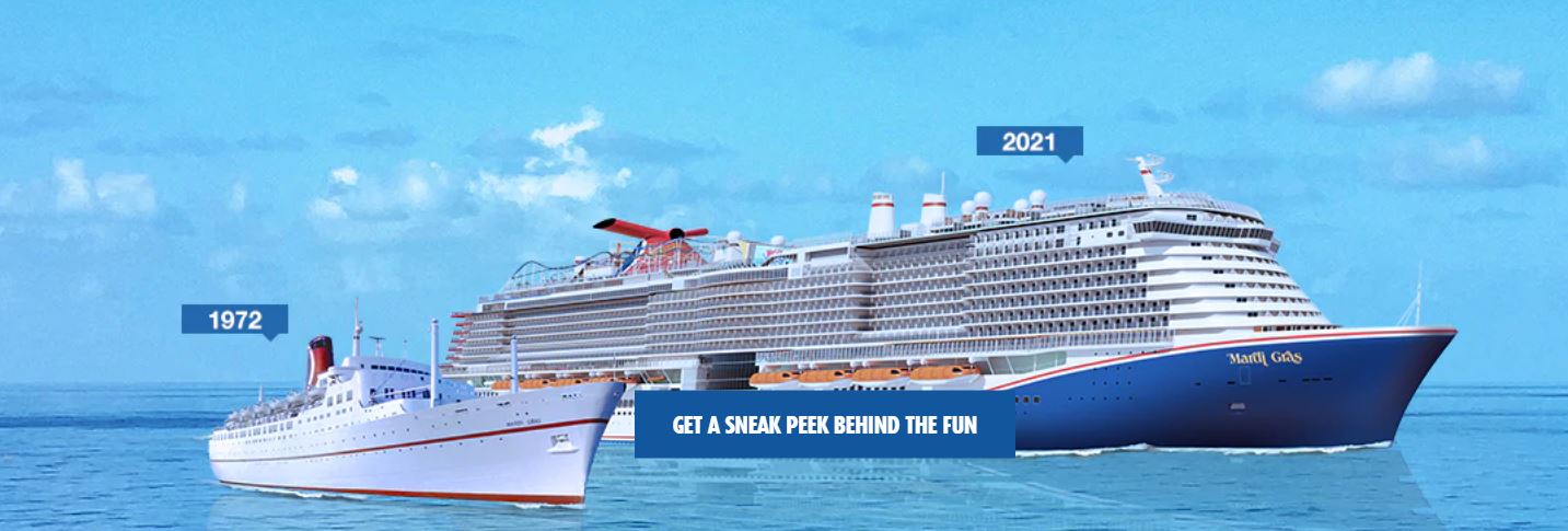 V roce 1972 se uskutečnila plavba na první lodi společnosti Carnival Cruise Lines - na Mardi Gras lodi, která byla menší, ale už tehdy bylo na ní dostatek zábavy. Nikdo nečekal, že právě tato loď změní "výletní svět".