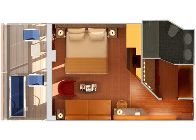 | 8J - Kajuta s větším balkonem 17 m² / balkon od 5,5 m². | 88 624 Kč 44 312 Kč za osobu |