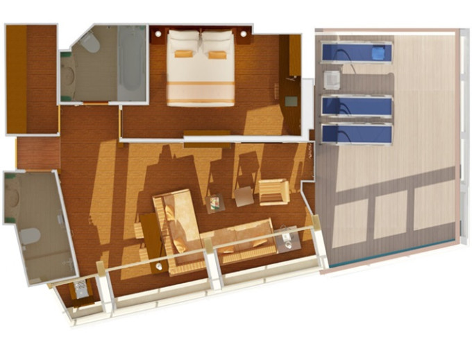 CS - Captain's Suite 50 m² / balkon 24 m². Výhody Suite. Max 5 osob. 96 375 Kč 48 188 Kč za osobu
