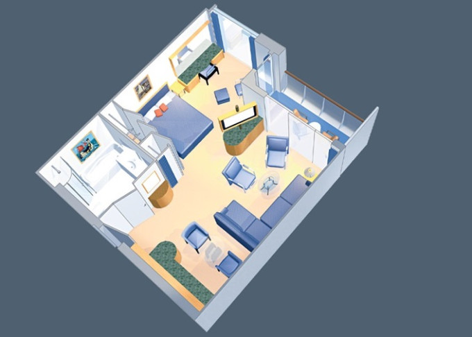 | VP - Ocean View Panoramic Suite (bez balkonu) 37 m². Panoramatické neotevíratelné okna. Výhody Royal Suite Class. 12. paluba. Max 6 osob. | 187 770 Kč 62 590 Kč za osobu |