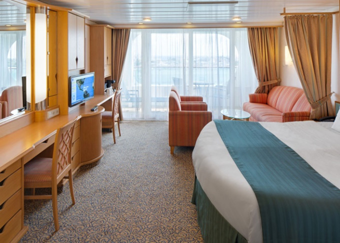 | VP - Ocean View Panoramic Suite (bez balkonu) 37 m². Panoramatické neotevíratelné okna. Výhody Royal Suite Class. 12. paluba. Max 6 osob. | 167 622 Kč 167 622 Kč za osobu |