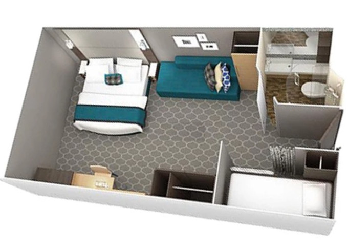 | 2S - Vnitřní kajuta Central Park View / s oknem 18 m². Neotevíratelné okno (výhled na Central Park). 9. paluba. Max 2-4 osoby. | 116 901 Kč 29 225 Kč za osobu | ||