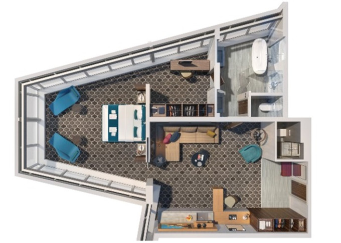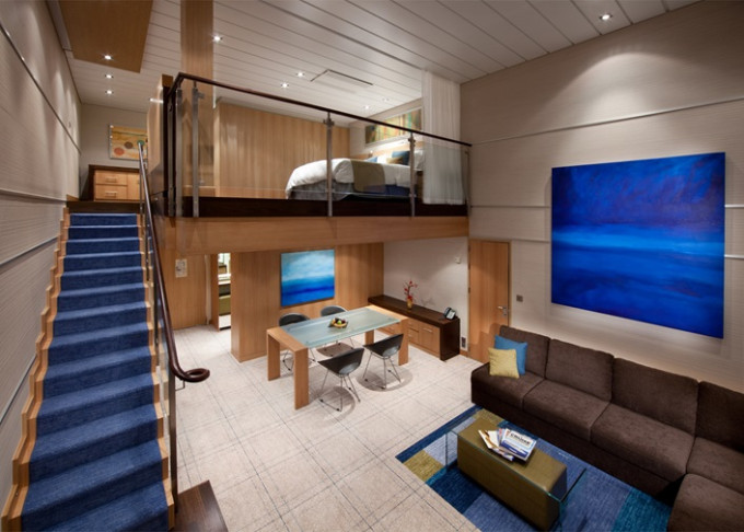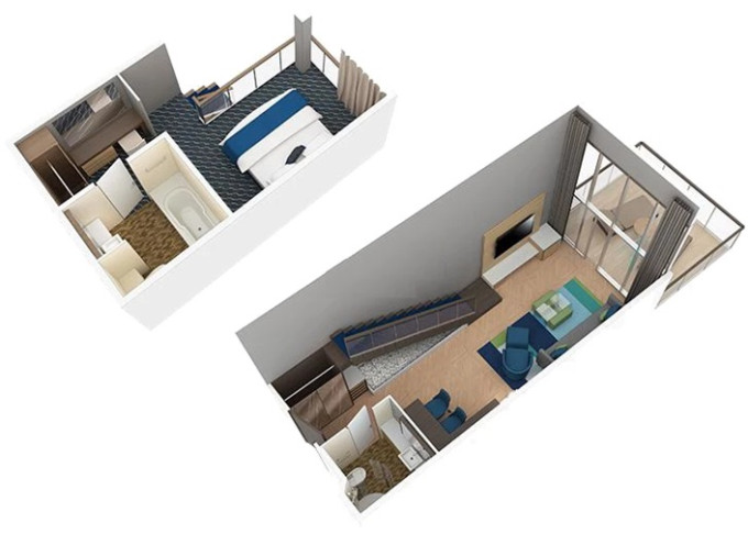 | L1 - Crown Loft Suite s balkonem 50 m² / balkon 10 m². 2-podlažní apartmán. Výhody Royal Suite Class. 17. paluba. Max 4 osoby. | 247 094 Kč 247 094 Kč za osobu | ||