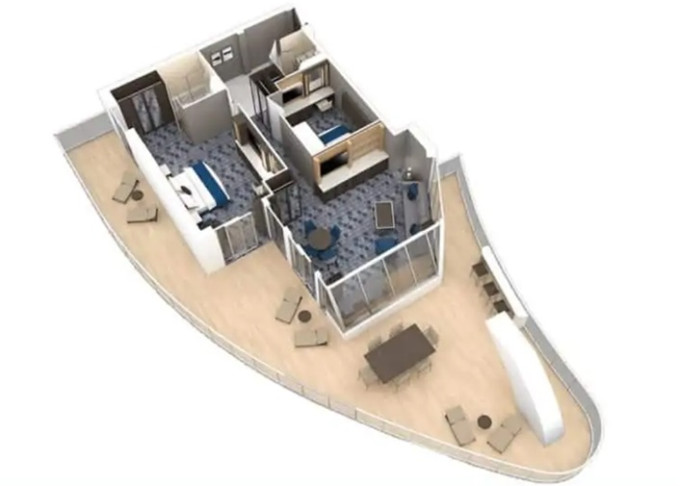 | A1 - Suite AquaTheater Spacious / 2 ložnice 76 m² / balkon 72 m². Výhody Royal Suite Class. 8. paluba. Max 8 osob. | 542 664 Kč 271 332 Kč za osobu |