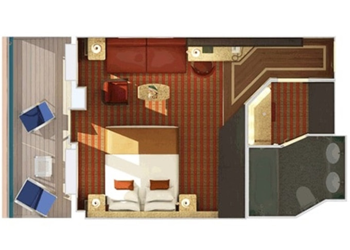 | 8N - Kajuta s větším balkonem Aft-View - výhled dozadu. 17 m² / balkon 5,5 m². Vzadu. | 49 025 Kč 24 512 Kč za osobu |