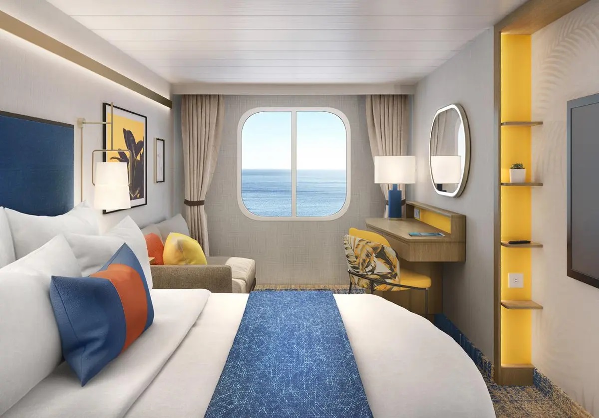 | T5 - Vnitřní kajuta s oknem / Surfside Family 17 m². Neotevíratelné okno s výhledem na čtvrť Surfside. 8. paluba vpředu. Max 4 osoby. | 111 615 Kč 27 904 Kč za osobu |