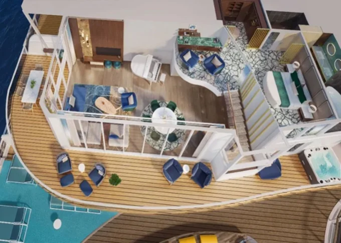 | OS - Owner’s Suite 61 m² + 17,5 m² balkón s výhledem na moře. 16,17. paluba vpředu. Max 5 osôb. Výhody Royal Suite Sky class. | 489 923 Kč 163 308 Kč za osobu |