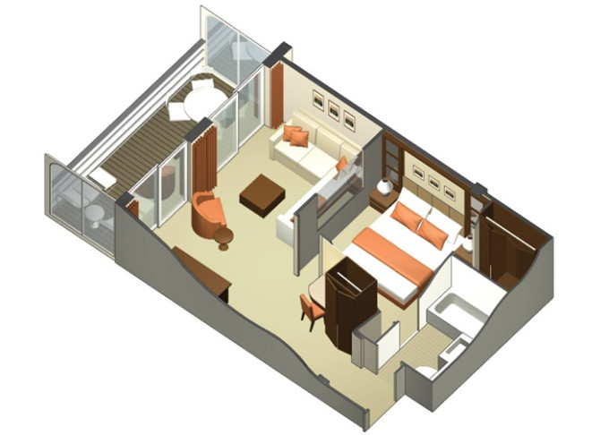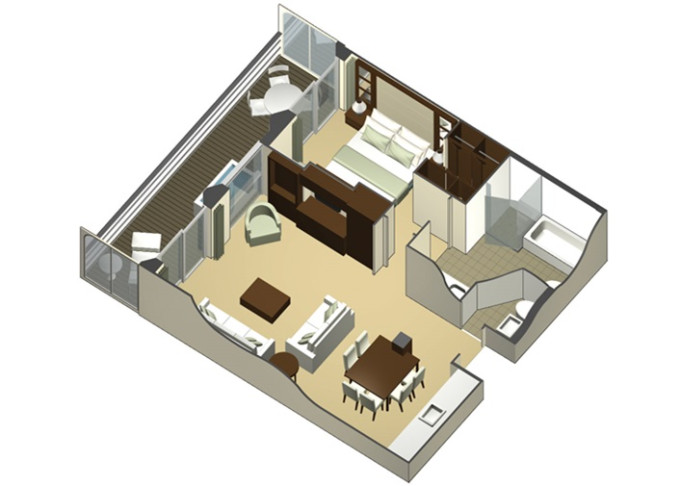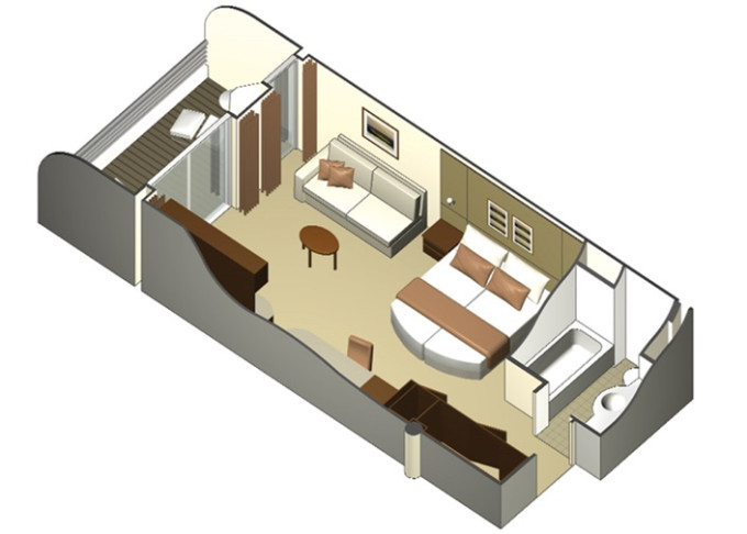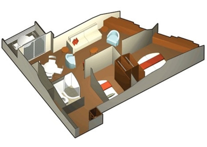S1 - Sky Suite 28 m² + balkon 7 m². 6. až 12. paluba. Max 4 osoby. Výhody Suite. 190 912 Kč 63 637 Kč za osobu