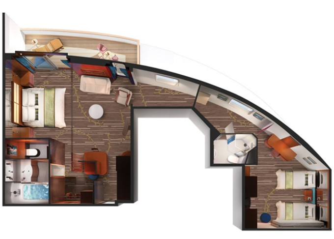 | SJ - Family Suite / omezený výhled 33 m². Celoplošné neotevíratelné okno s omezeným výhledem. Výhody Suite. 7. paluba - střed. Max 8 osob. | 290 707 Kč 145 354 Kč za osobu |