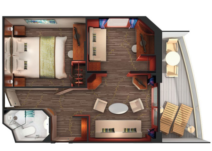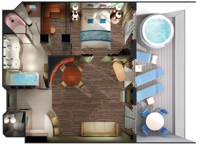 Suite: nejluxusnější a nejprostornější kajuty na lodi; možnost přistýlek