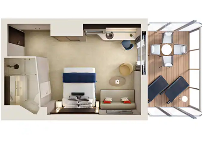 | S5 - Deluxe Owner's Suite m² / balkon m². Výhody Suite. | 384 717 Kč 192 359 Kč za osobu |