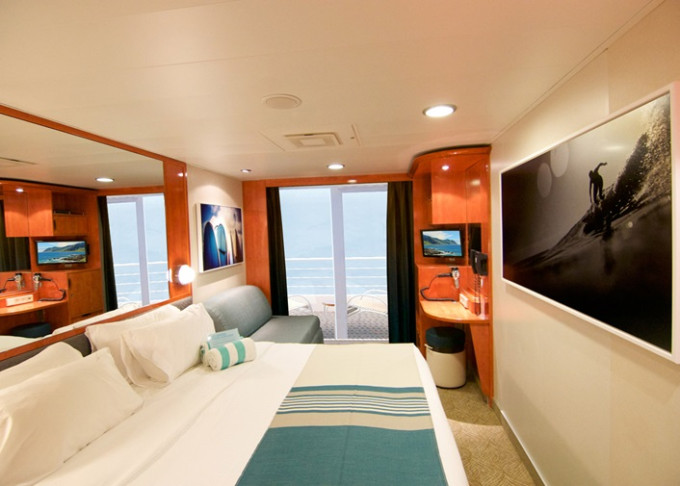 koupelna se sprchou a WC, 2 lůžka, v některých kajutách možnost přistýlek, toaletní stolek, úložné prostory, interaktivní TV, sejf, telefon, vysoušeč vlasů.