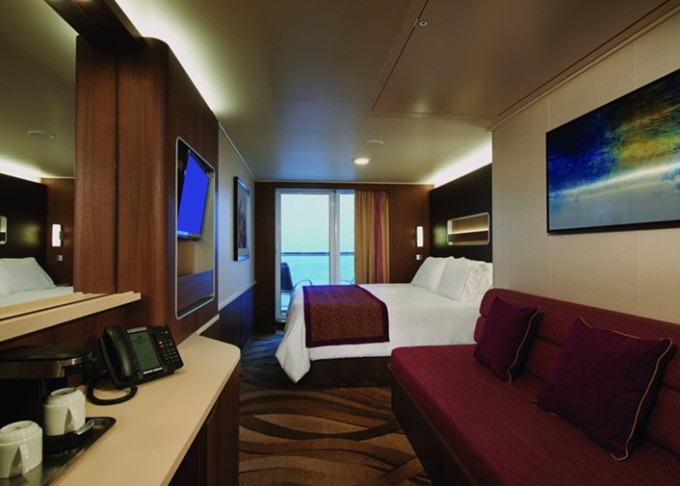 koupelna se sprchou a WC, 2 lůžka, v některých kajutách možnost přistýlek, toaletní stolek, úložné prostory, interaktivní TV, sejf, telefon, vysoušeč vlasů.