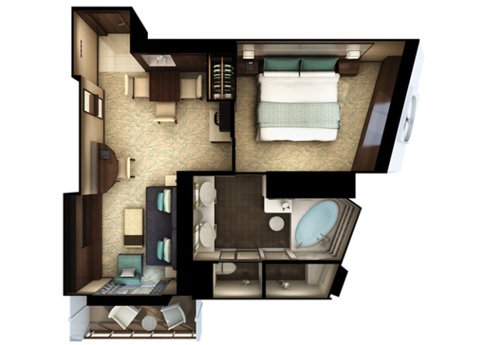 HD - The Haven Deluxe Suite 50 m² / balkon 8 m². Vířivka. Výhody The Haven. 16. paluba - vpředu. Max 4 osoby. 183 631 Kč 91 815 Kč za osobu