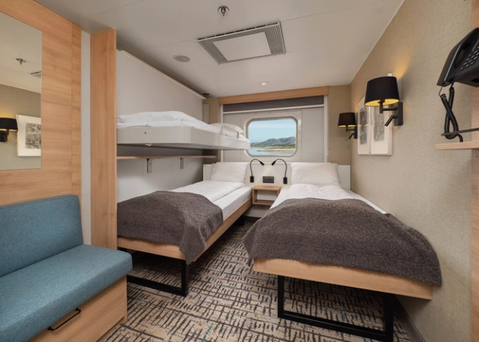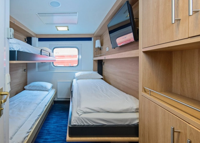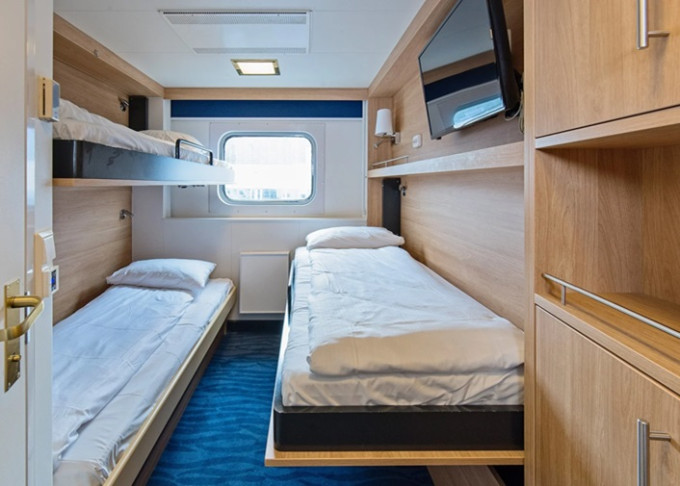 | L3 - Vnější kajuta Polar 8-12 m². Neotevíratelné obló s omezeným výhledem. Max 3 osoby. | 97 301 Kč 48 651 Kč za osobu | ||