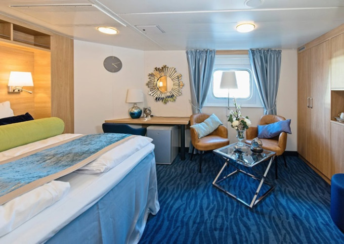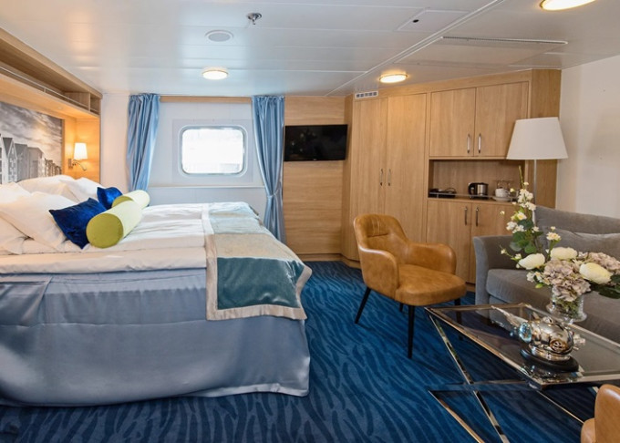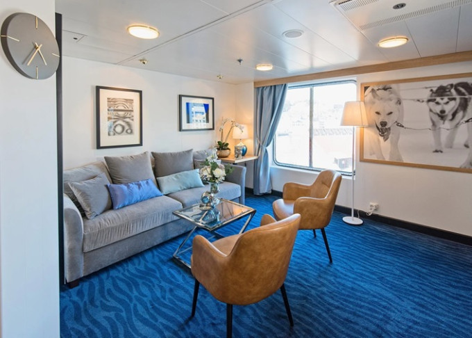 | M4 - Expedition Suite 28-30 m². Panoramatické neotevíratelné okno. Obývací část, Tv, WiFi, varná konvice. Max 4 osoby. | 250 710 Kč 125 355 Kč za osobu | ||