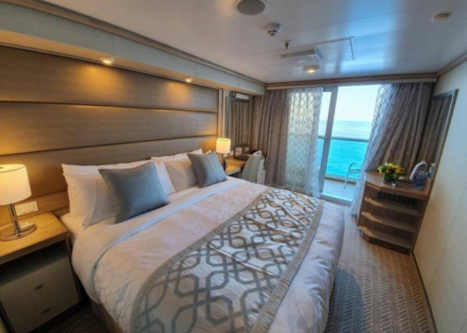 Standardní vybavení kajut: koupelna se sprchou a toaletou, 2 lůžka s možností konfigurace, úložné prostory, minibar, fén, TV, trezor. Balkony je vybaven malým stolkem a 2 židlemi či lehátky.