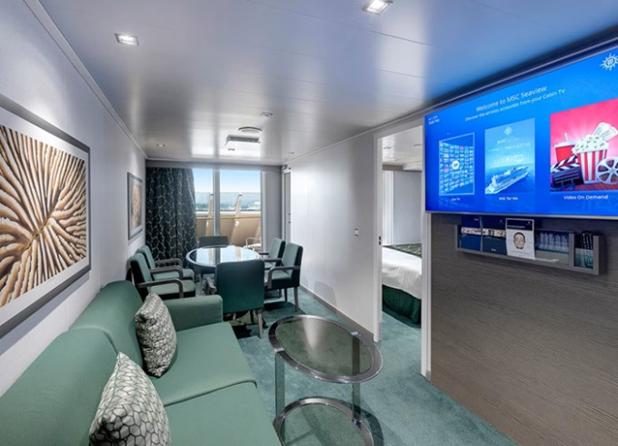 | YC4 - Yacht Club Owner's Suite s vířivkou 98 m² + balkon s vířivkou 25 m². Oddělený obývací pokoj a ložnice, šatník, koupelna s vanou. Max 5 osob. 19. paluba. Cenový model MSC Yacht Club. | 355 492 Kč 118 497 Kč za osobu |