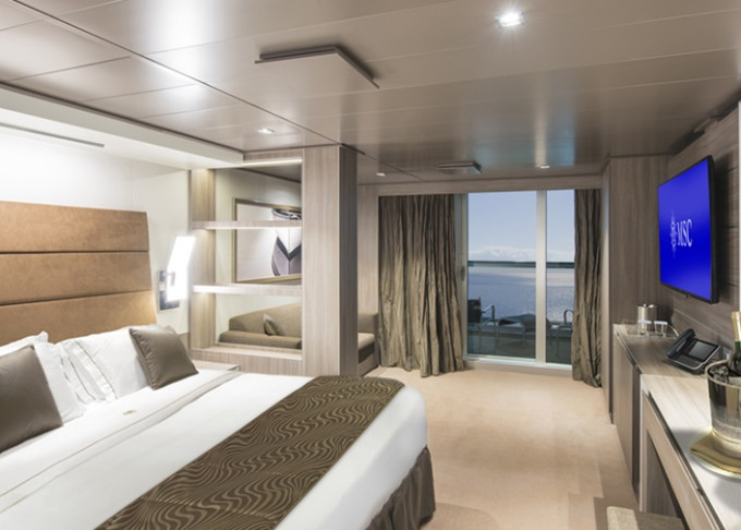 | YC1 - Yacht Club Deluxe Suite od 25 m² + balkon 8 m². Ložnice s oddělenou obývací částí, šatník. Max 5 osob. 16.-19. paluba. Cenový model MSC Yacht Club. | 114 981 Kč 114 981 Kč za osobu | ||