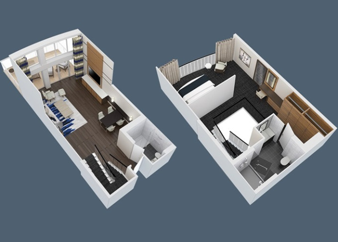 | GL - Grand Loft Suite s balkonem 65 m² / balkon 33 m². Výhody Royal Suite Class. 2-podlažní apartmán. 8. paluba. Max 2-4 osoby. | 383 121 Kč 95 780 Kč za osobu |