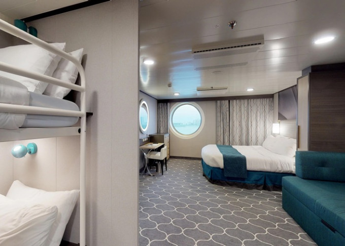 1K - Velká vnější kajuta Ultra Spacious 25 m². Neotevíratelné okno. 11. paluba. Max. 6 osob. 95 656 Kč 23 914 Kč za osobu