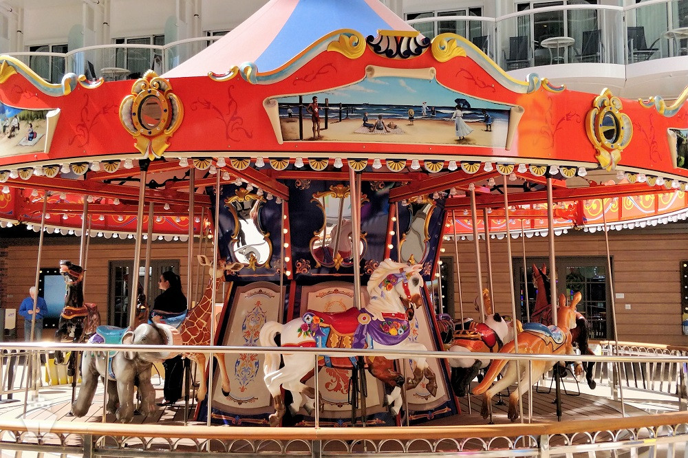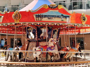 • Klasický ručně dělaný kolotoč na Boardwalk Arcade
