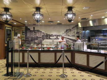 V ceně plavby je nadstandardní plná penze v hlavní restauraci - Main Dining Room, velkolepé bufety ve Windjammer Marketplace, občerstvení v Park Café, pizza a některé nápoje (voda, limonáda, ledový čaj z automatů v bufetových restauracích).