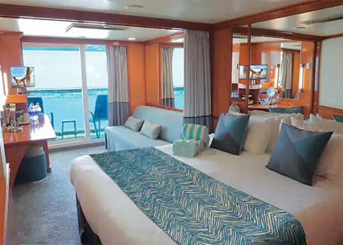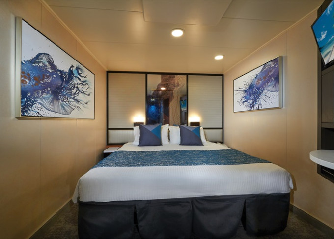 koupelna se sprchou a WC, 2 lůžka, v některých kajutách možnost přistýlek, toaletní stolek, úložné prostory, interaktivní TV, trezor, telefon, vysoušeč vlasů.