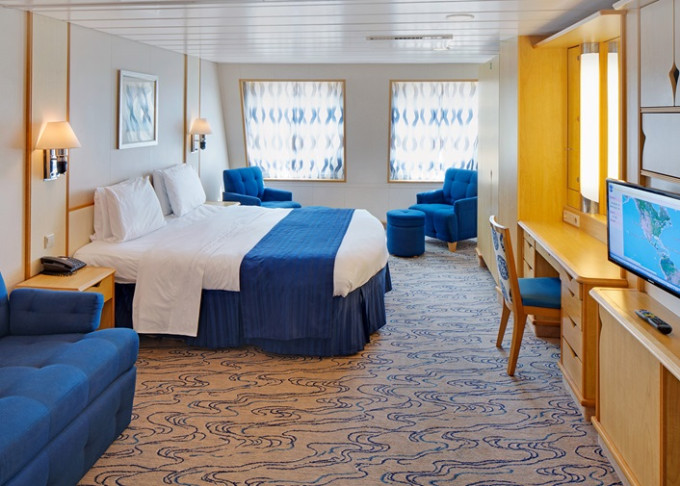 | VP - Ocean View Panoramic Suite (bez balkonu) 37 m². Panoramatické neotevíratelné okna. Výhody Royal Suite Class. 12. paluba. Max 6 osob. | 64 970 Kč 64 970 Kč za osobu |