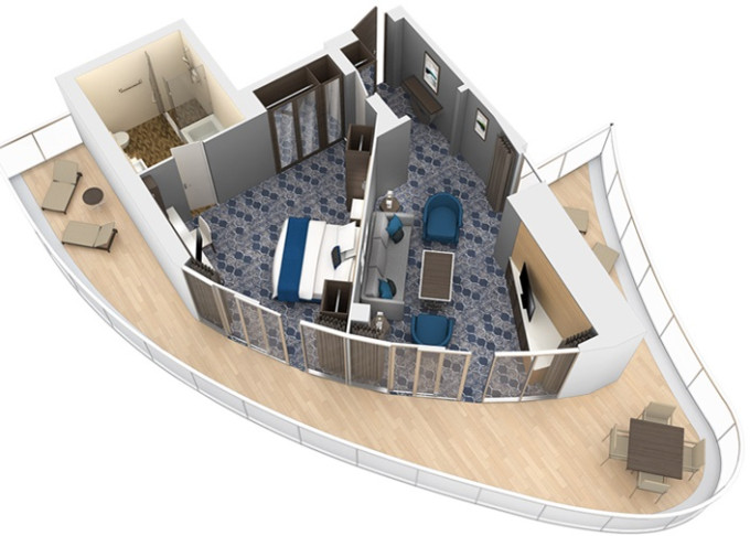- Suite Neighborhood: exkluzivní část lodi je věnovaná náročným hostům, kteří zvolili ubytování ve suitách. K dispozici mají vlastní restauraci, opalovací tersu s jedinečným výhledem na oceán, soukromý salonek a mnohem více. Pro rodiny je k dispozici balíček Ultimate Family Suite.
