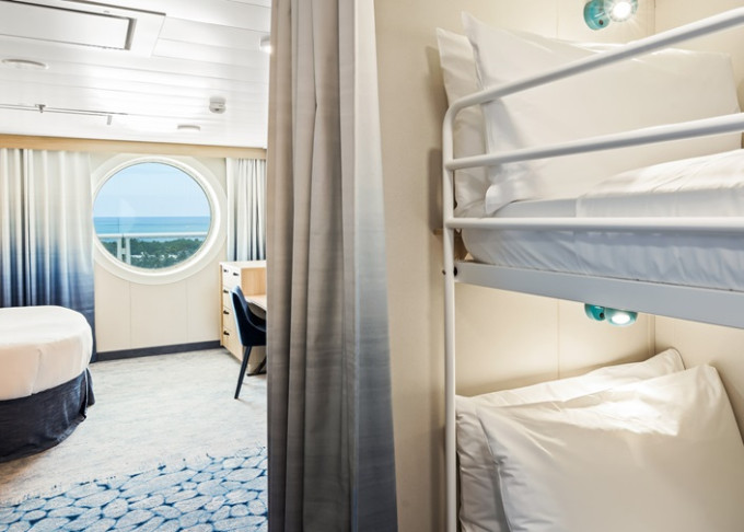 - Kajuty Room play - kajuty pro početné rodiny, cenově dostupné varianty s prostornými interiéry a s propojenými pokoji pro ubytování větších rodin. Řada mimořádně prostorných místností napříč kategoriemi sahá až po nové Ultimate Family Suite.