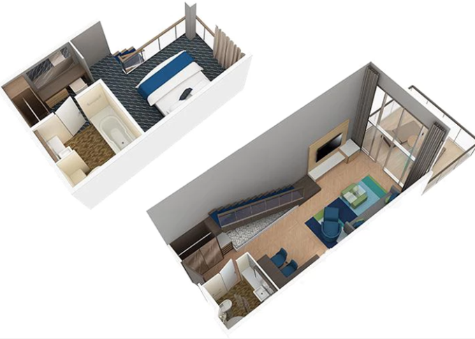 | L1 - Crown Loft Suite 51 m² / balkon 11 m². 2-podlažní apartmán. Výhody Royal Suite Class. 18. paluba. Max 4 osoby. | 378 259 Kč 378 259 Kč za osobu | ||