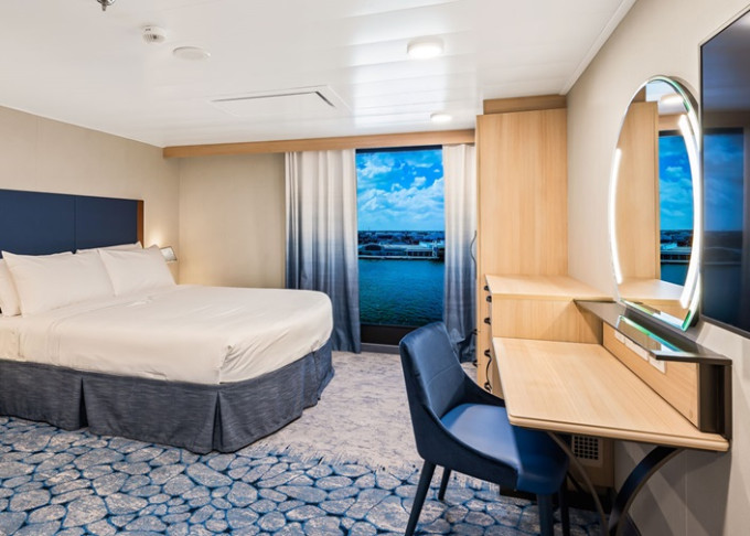 | 4U - Vnitřní kajuta s virtuálním balkonem 16 m². Obrazovka velikosti balkonových dveří s promítaným výhledem. 7. až 14. paluba. Max 4 osoby. | 69 822 Kč 34 911 Kč za osobu | ||