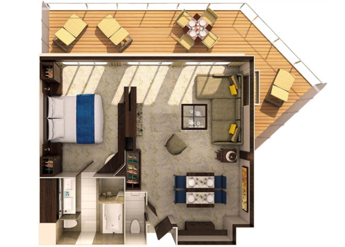 | J1 - Junior Suite s velkým balkonem 25 m² / balkon 15 m². Výhody Royal Suite Class. 6. až 13. paluba. Max 4-5 osob. | 221 609 Kč 221 609 Kč za osobu |