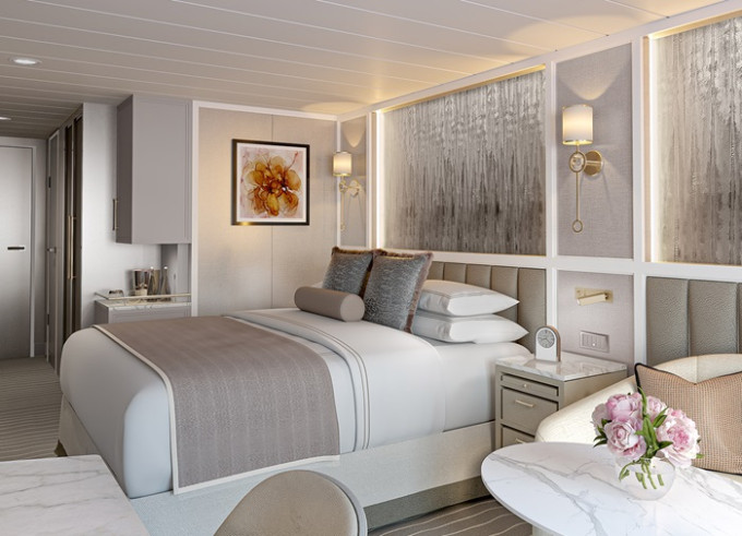 | OS - Owner’s Suite 123 m² + balkon s vířivkou od 62 m². Výhody Owners Suite. 8/9/10. paluba. Max 2-3 osoby. 4 izby: vstupná hala s pianom, ložnice, velká obývací místnost s jídelní částí, 2 koupelny (1 s vířivkou), 2 šatníky. | 978 451 Kč 489 225 Kč za osobu |