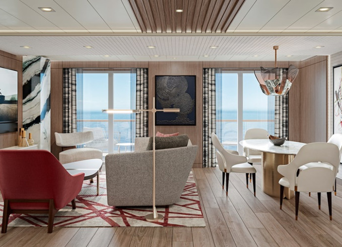 | OC - Oceania Suite 77 m² + balkon s vířivkou od 16 m². Výhody Oceania Suite. 11/12. paluba. Max 2-3 osoby. 3 izby: Ložnice, obývací místnost, jedáleň, mediálna místnost s 50″ LCD Tv, 2 koupelny (1 s vířivkou), šatník, extra wc. | 671 734 Kč 335 867 Kč za osobu |