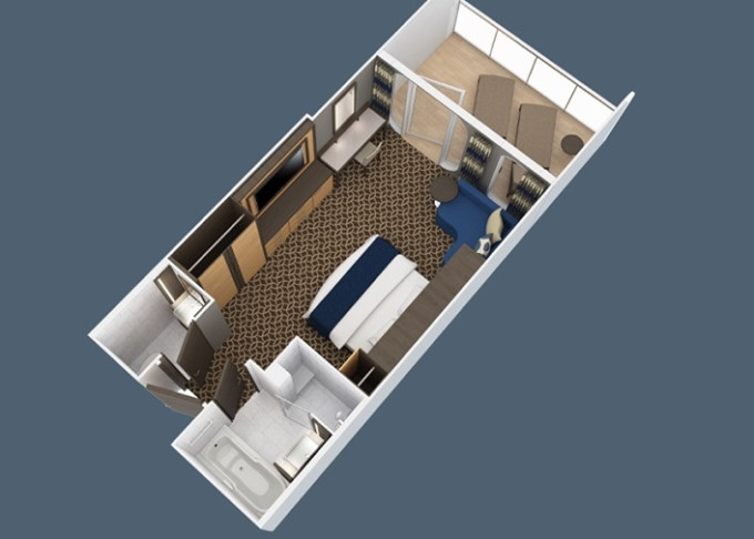 | 3U - Vnitřní kajuta s virtuálním balkonem 15 m². Obrazovka velkosti balkonových dverí s promítaným výhledem. 7. až 12. paluba. Max 2-4 osoby. | 48 775 Kč 12 194 Kč za osobu |