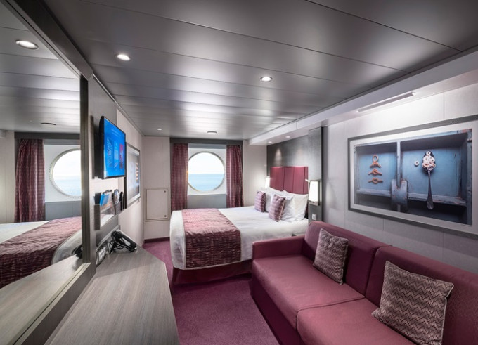 - ubytování v plně vybavené kajutě: vlastní koupelna se sprchou a WC, interaktivní TV, telefon, trezor, vysoušeč vlasů, regulovatelná klimatizace, minibar (za poplatek), Wi-fi (za poplatek)