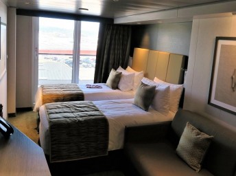 Kajuta oknem: cca 13 - 19 m², kajuta s manželskou postelí (na požádání 2 oddělené postele) a 1-2 vyklápěcí horní lůžka. Klimatizace, koupelna se sprchou a WC, toaletní stolek, skříň, interaktivní TV, sejf, telefon, vysoušeč vlasů, neotevíratelné okno. Některé kajuty v kategorii Bella mají omezený výhled.